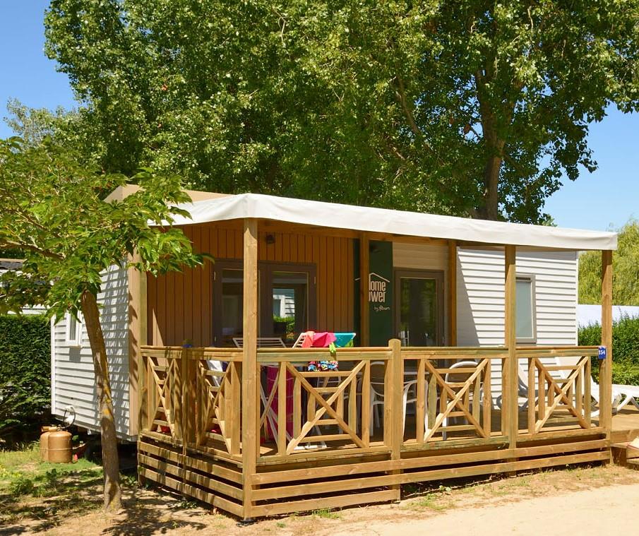 Stay in one of our mobile homes with or without television in Quiberon available in 1, 2 or 3 bedrooms. Treat yourself to affordable camping vacations in Quiberon in our standard and comfort rentals thanks to our special offers starting at 199€ per week. For optimum comfort, opt for our “Homeflower” mobile homes with a wide range of equipment included: television, air conditioning, dishwasher, plancha and, above all, bed linen and towels. Equipped with semi-covered terraceOur mobile homes for rent will enable you to enjoy your stay both indoors and outdoors. Enjoy moments of conviviality with family or friends on the terrace Enjoy meals with friends or family on a 4-star campsite with swimming pool in Quiberon. Inside, you’ll find a spacious living area with bench seat bench seat and table and fully-equipped kitchenette. Just like at home, you’ll enjoy comfortable bedrooms and a bathroom with shower, sink and storage space.