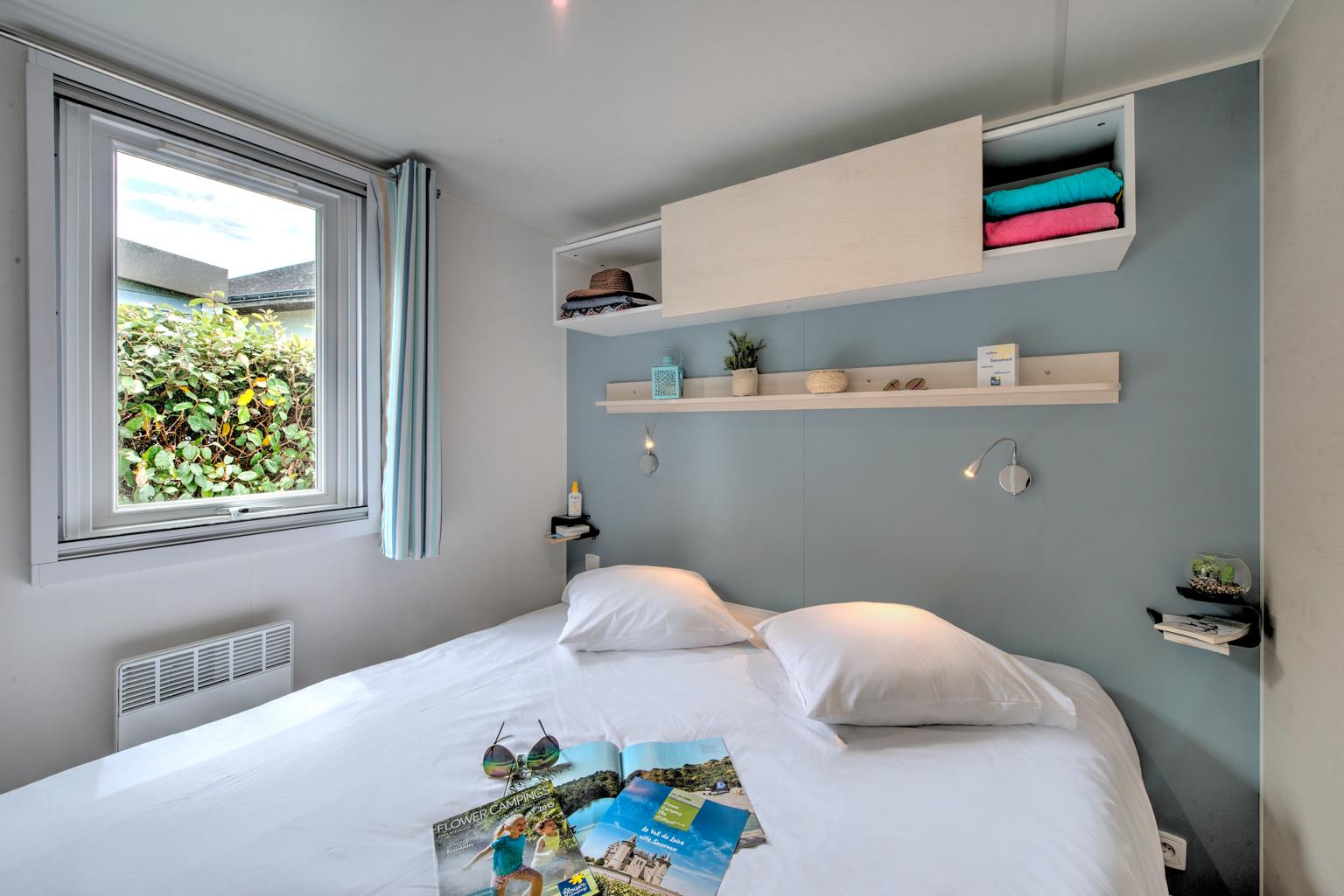 Do you want optimum comfort? Let yourself be tempted by top-of-the-range features of our Homeflower, the premium version of our mobile homes. Single-sloped roof, large panoramic terrace, contemporary decor, recent furnishings, blackout blinds in the bedrooms… A host of features that will make you love this new type of accommodation, specially designed by Flower Campings. Take advantage of a wide range of facilities to make your camping vacation in Quiberon as easy as possible: dishwasher, air conditioning, television, sheets and towels provided for all participants. Book your stay or weekend in a mobile home and take advantage of our many special offers for low-cost vacations.
